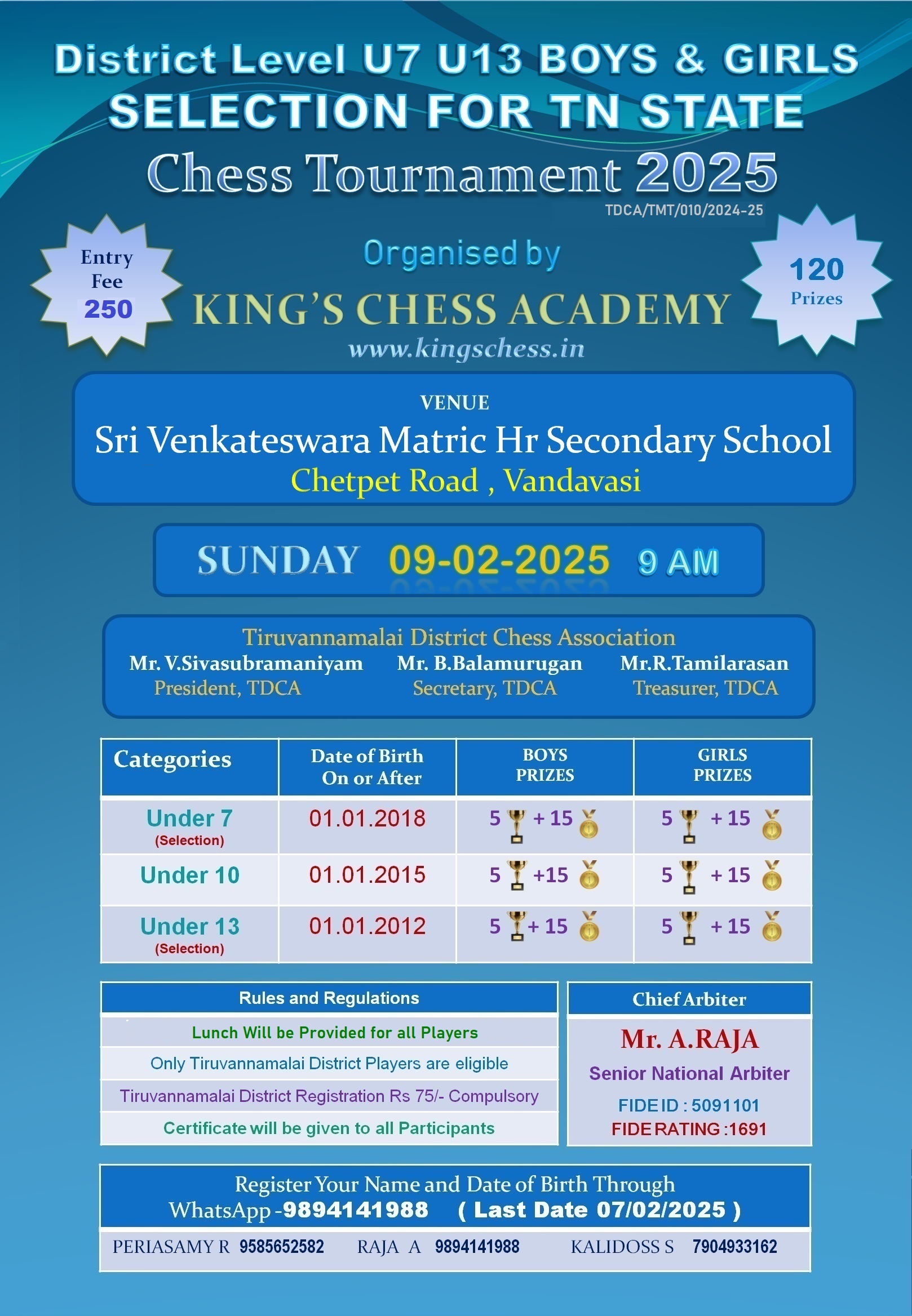 Venue: MAHARISHI VIDYA MANDIR – TIRUVANNAMALAI